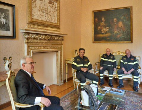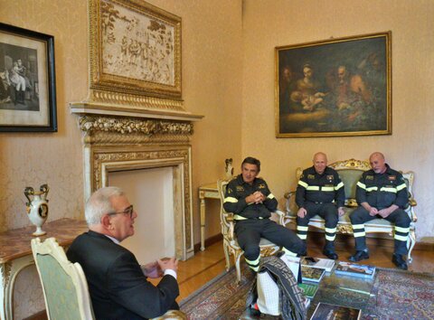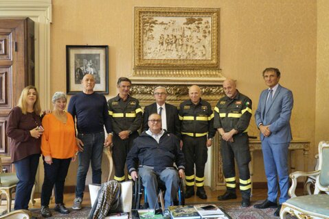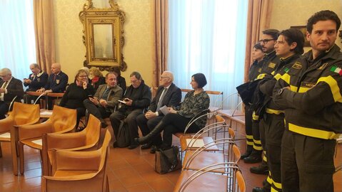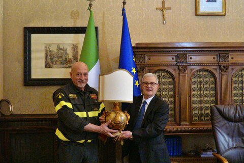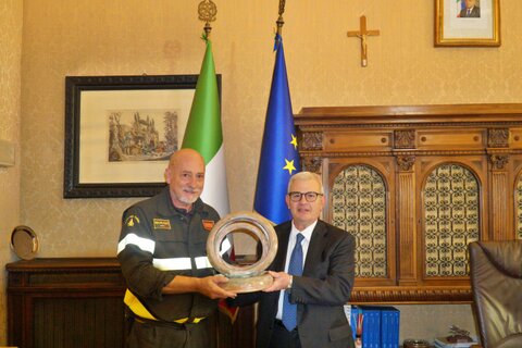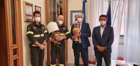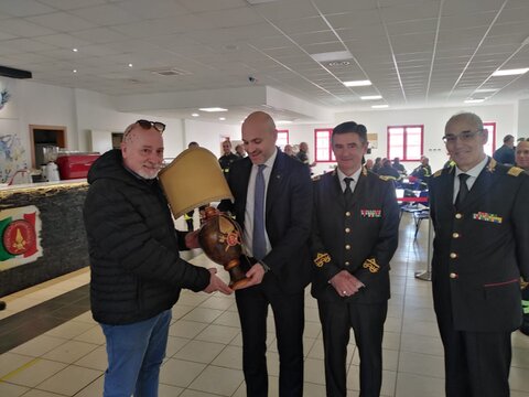 In data 19.10.2022 , consegna al Sig. Prefetto di Pesaro Dott. Tommaso RICCIARDI di una Lampada con la fiamma dei Vigili del Fuoco e e di una Scultura in Ceramica . Presenti il Comandante Prov.le di Ancona Dott. Ing. Pierpaolo PATRIZIETTI, il Comandante di Pesaro Dott. Ing. Leonardo RAMPINO, il CRE Ivano PROCACCINI e l'Assistente SATI Giancarlo FEUDO.