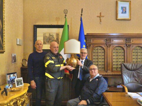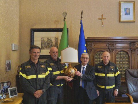 Donata Lampada al Prefetto di ANCONA Dott. Darco PELLOS con il Comandante di Ancona Ing. Pierpaolo PATRIZIETTI