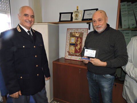 18 Ottobre 2023 - Commissariato di Genzano di Roma, pensionamento dell’amico Commissario Fabio Fagiolo. Consegnato in dono lo Stemma della Polizia di Stato in terracotta, lucidato a cera, che verrà esposto presso il Commissariato.